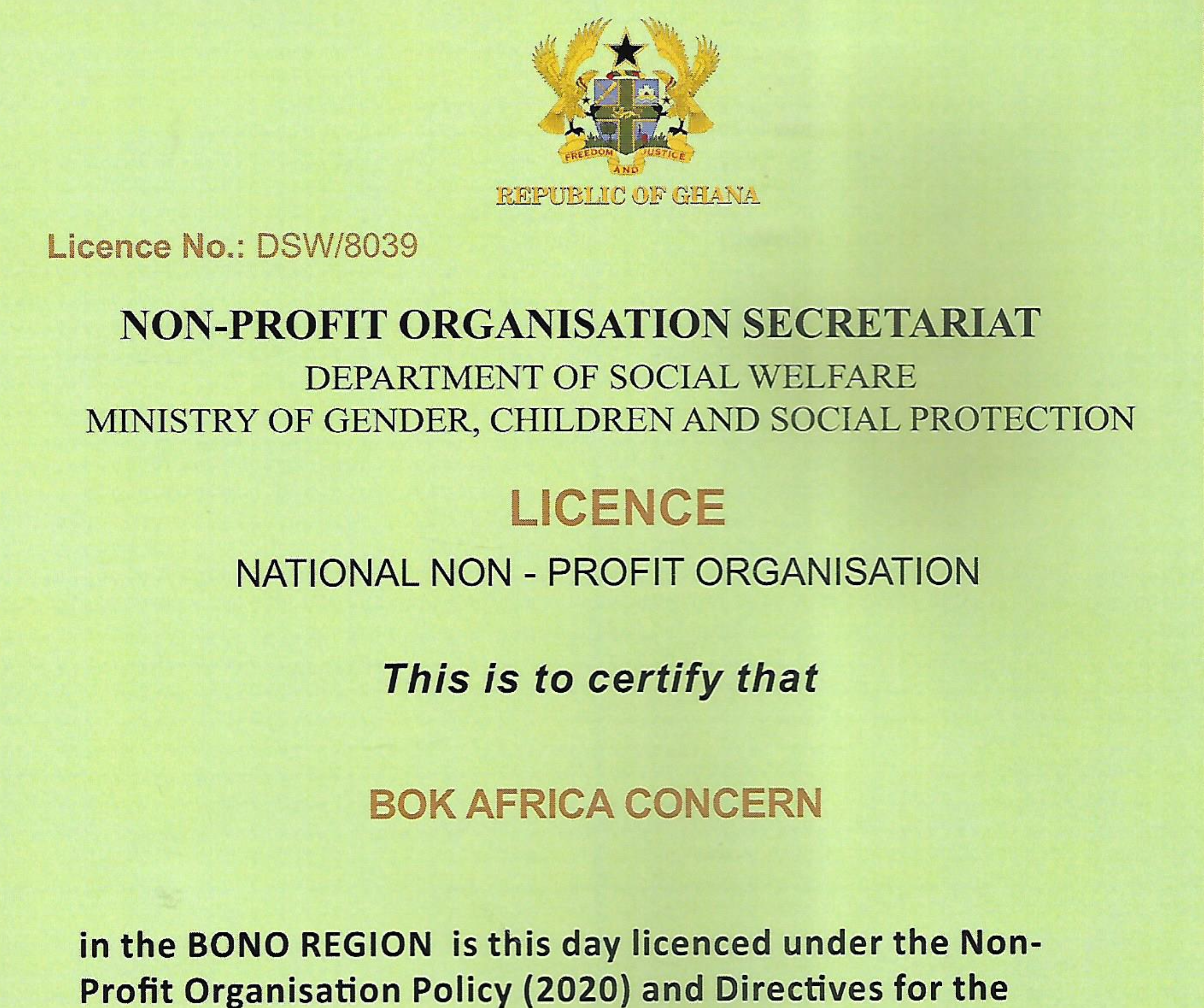 Full name of the organisation: BOK Africa Concern